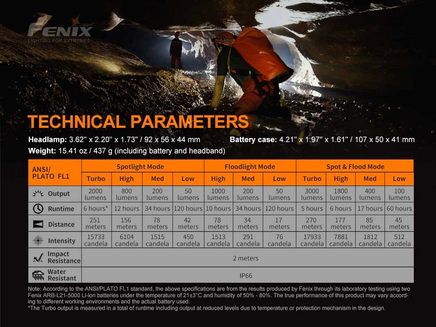 Fenix ​​HP30R V2.0 е професионален челник с отделен корпус за батерии, захранван от две литиево-йонни батерии 21700. Този челник може да се зарежда през USB-C порта, вграден в кутията за батериите, а също и да се използва като Power Bank за зареждане на други устройства. Ключът се завърта ви позволява да преминавате между четири нива на студена бяла светлина и три нива на неутрална бяла светлина и е удобен за ползване дори и с ръкавици. Диодите за широко осветяване и диода за далечно осветяване могат да се включват едновременно и така да осигурят максимална мощност от 3000 лумена. Създаден за професионалисти, челникът Fenix ​​HP30R V2.0 е с висока производителност.