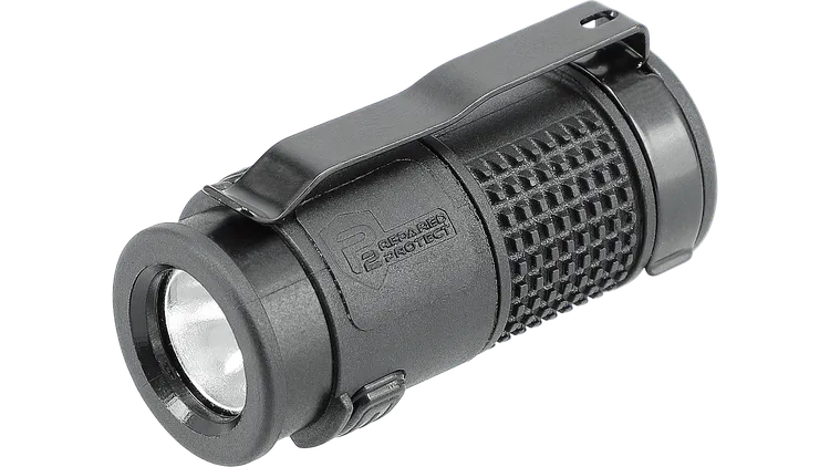 UMAREX P2P Pocket Flash Strobe Flashlight 500 lumens е компактен фенер за самозащита, създаден специално за безконтактна защита срещу агресори. Моделът разполага със силна стробоскопична светлина от 500 лумена, която се активира моментално чрез два удобно разположени бутона върху главата на фенера – идеално решение за стресови и опасни ситуации, когато бързата реакция е ключова. За максимална готовност Pocket Flash е оборудван с халка за ключодържател и здрава щипка за джоб, което позволява лесно и постоянно носене дори на места с ограничения за оръжие. Здравият полимерен корпус е водоустойчив по стандарт IPX7 и осигурява надежден захват и интуитивна употреба. Фенерът работи с включена литиева батерия CR123, която има дълъг срок на годност от 5 до 10 години, гарантирайки продължителна оперативна готовност. UMAREX P2P Pocket Flash е идеален избор за ежедневна лична защита, сигурност и бърза реакция във всяка ситуация.