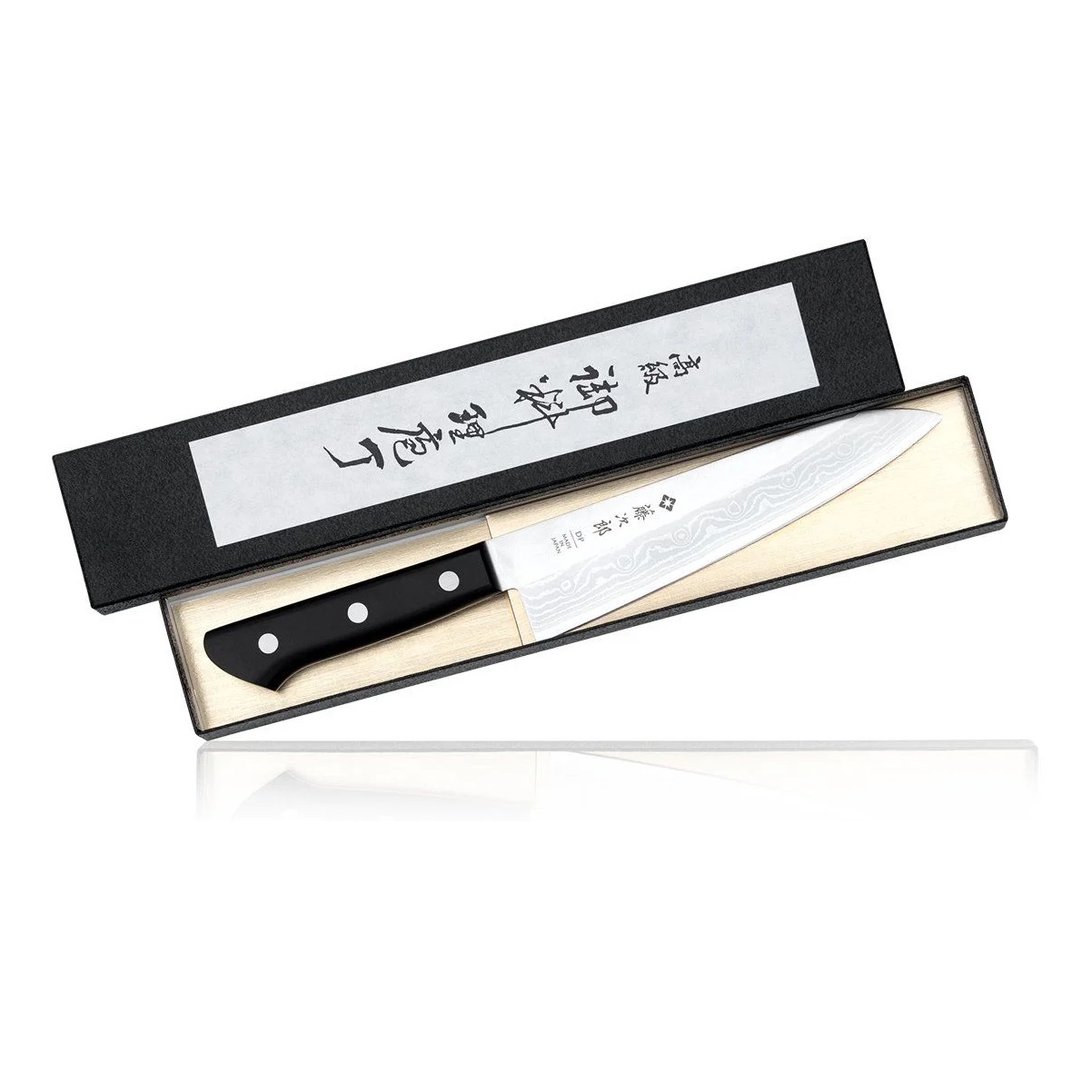 Японската компания Tojiro е известен производител на висококачествени кухненски ножове, които съчетават традиционни японски технологии с иновации в дизайна и производството. Основана през 1955 година, Tojiro бързо се утвърдява на пазара за професионални и домашни ножове, благодарение на своето внимание към детайла, използването на премиум материали и ангажимента за висока производителност. Ножовете на Tojiro се отличават с висококачествени стомани като VG-10 и Damascus стомана, които осигуряват отлична твърдост, издръжливост и дълготрайна острота. Процесът на изработка включва ръчно заточване и уникален сандвич дизайн на острието, което съчетава издръжливост и острота. Дизайнът на ножовете е изключително ергономичен, с удобни дръжки, които предлагат баланс и комфорт дори при дълги периоди на употреба. Издръжливостта на ножовете Tojiro е гарантирана от тяхната здрава конструкция, като същевременно те запазват висока ефективност и лесно се поддържат.