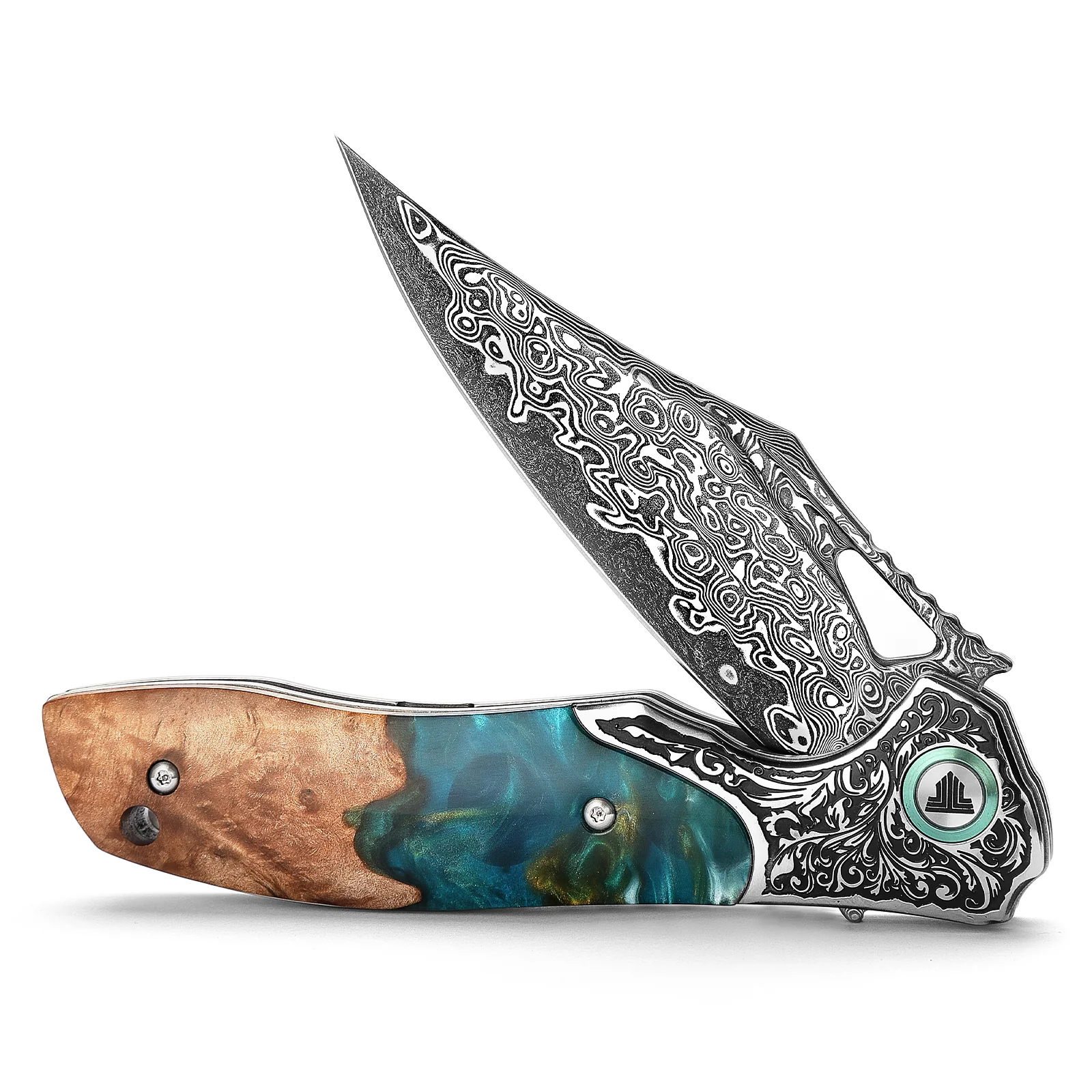 Trivisa Apus-07C е елегантен и висококачествен сгъваем нож, който съчетава занаятчийско майсторство с модерна функционалност. Със своето красиво острие от 67-слойна дамаскова стомана, този модел е не само ефективен инструмент, но и истинско произведение на изкуството.