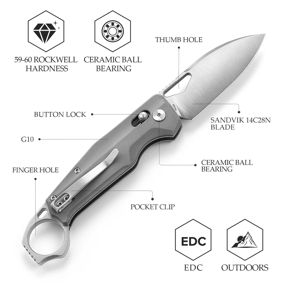 Керамичните лагери в механизма на ножа осигуряват плавно и бързо отваряне на острието с минимално усилие. Тези лагери значително намаляват триенето и удължават живота на ножа, като същевременно осигуряват висока ефективност и гладко отваряне при всяко използване.
