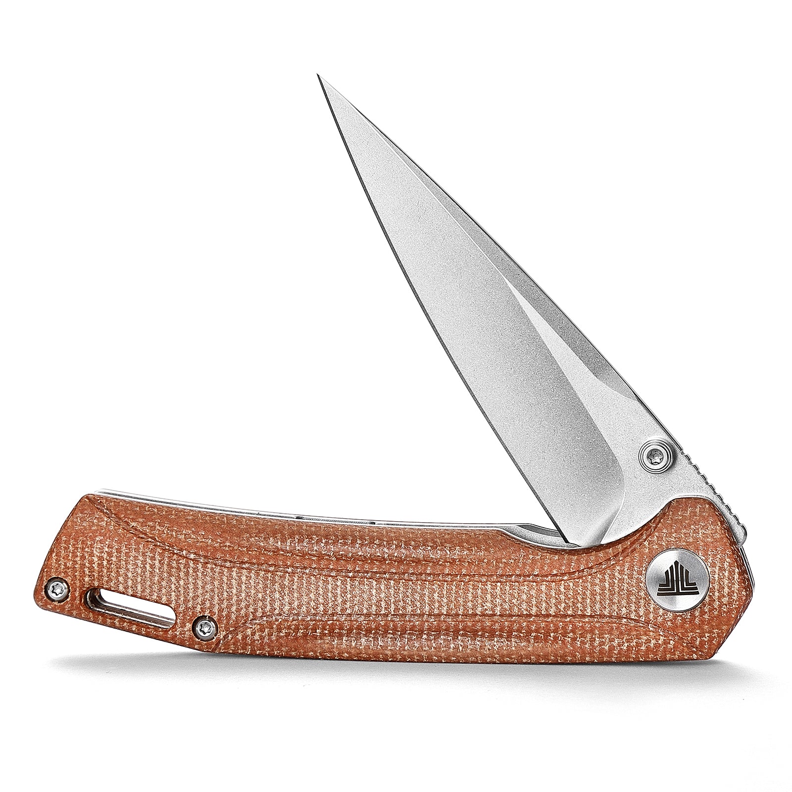 Ръкохватката е направена от микарта – издръжлив и лек материал с естествено сцепление, дори при влажни условия. Усеща се стабилно в ръката и издържа на години ползване без компромис в качеството.