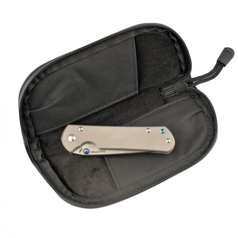 Dulotec K904 е тънък и лек джобен нож, изключително удобен за ежедневието. Комбинацията от фин дизайн и висококачествени материали са негова отличителна черта. Ножът може да се отваря с палец чрез пина на острието (еднакво удобен за лява и дясна ръка). Острието е сведено тънко, което го прави много резлив и също така лек. Въпреки това ножът се отваря бързо и леко, благодарение на вградените лагерни шайби.