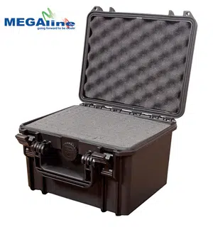 Водонепромокаем полимерен куфар от италианската фирма Megaline, предназначен за максимална защита на съдържанието. Куфарът разполага с две заключващи точки за допълнителна сигурност и е пълен с пяна, осигуряваща амортизация и защита. Вграден е механизъм за автоматично регулиране на налягането, който осигурява оптимални условия за съхранение на чувствителни предмети.