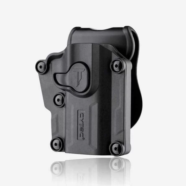 Cytac Mega-Fit е полимерен кобур и разполага с регулируеми винтове, за да пасне на 80+ пистолета. За потребителите, притежаващи множество пистолети, опростеният и ефективен дизайн помага да се постигне гъвкаво използване. Въртенето на 360 градуса и опцията от 7 начина за носене правят идеално прилягане във всяко приложение.